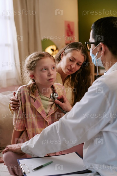 Девочка, осматриваемая врачом-мужчиной при наблюдении матери