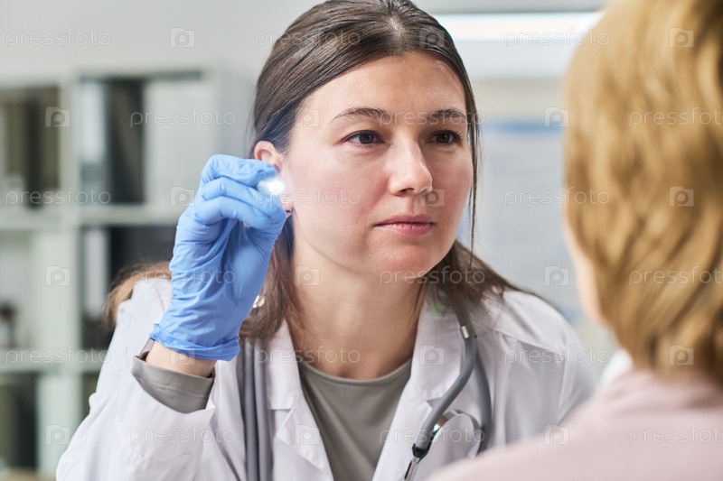 Женщина-врач, осматривающая пациентку молодой взрослой женщины