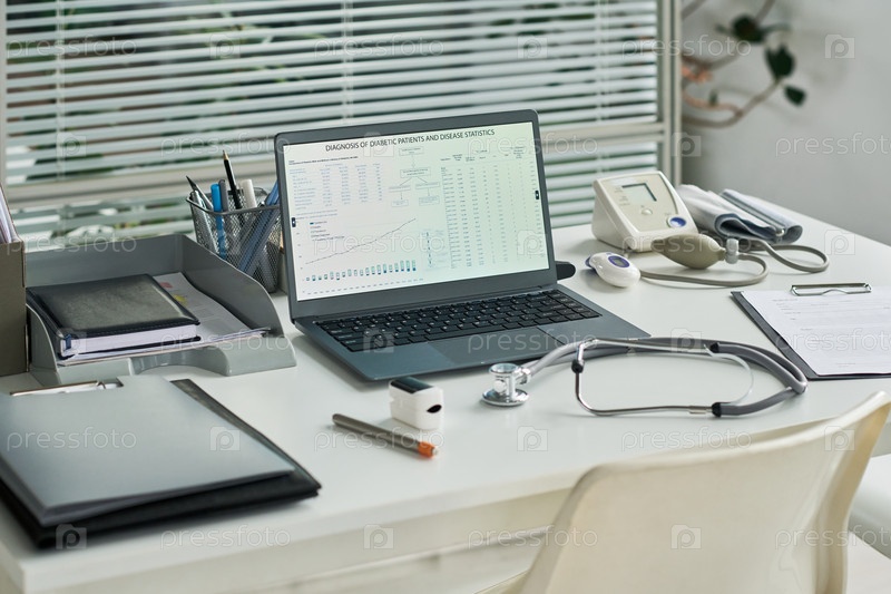 Медицинский офис Дисплейный рабочий стол Ноутбук Анализ данных и устройств диабета