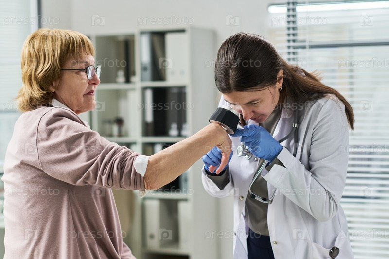 Взрослая женщина, проходящая осмотр кожи у врача-женщины