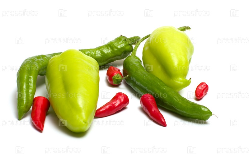 Зеленый и красный перцы на белом фоне