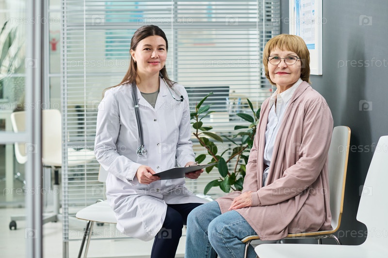 Женщина-врач консультирует старшую женщину в медицинском кабинете