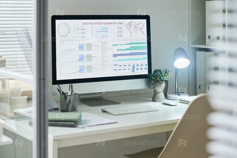 Современный офисный стол, отображающий статистические диаграммы и анализирующий тенденции данных