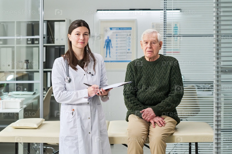Женщина Доктор Консалтинг Старший мужчина в медицинском кабинете