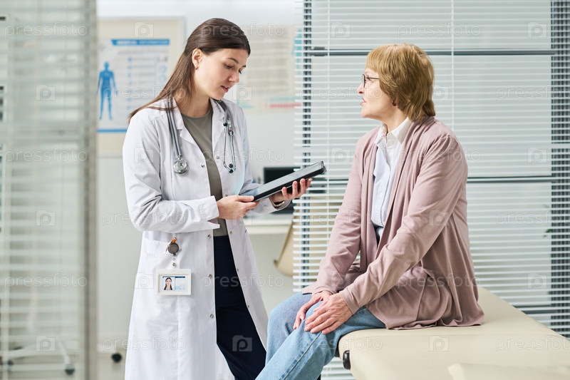 Женщина-врач консультирует взрослую женщину Молодая женщина