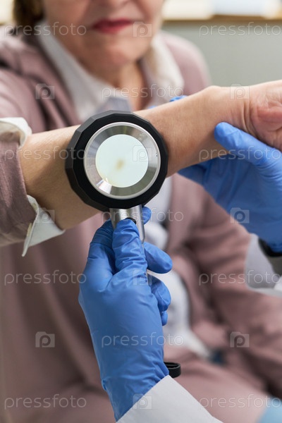 Взрослая женщина, проходящая осмотр кожи у медицинского работника