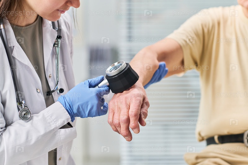 Взрослый мужчина проходит дерматологическое обследование у врача