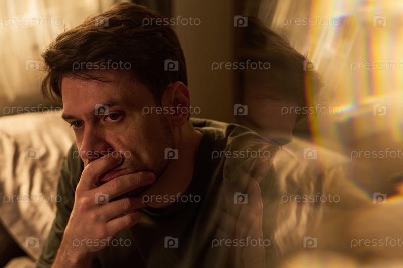 Портрет молодого человека, сидящего в помещении и задумчивого