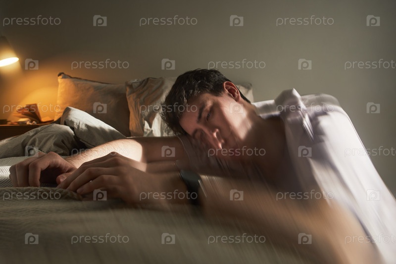 Молодой белый мужчина сидит на кровати, испытывая эмоциональное расстройство