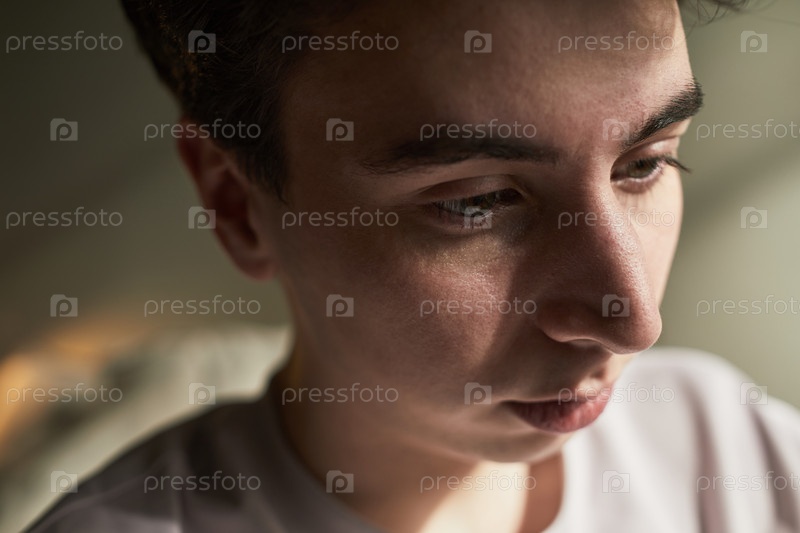 Портрет белого мальчика-подростка, показывающего печаль и глубокое созерцание