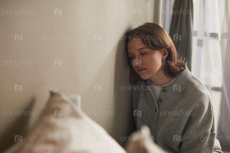 Молодая белая женщина сидит одна, испытывая грусть и эмоциональное расстройство