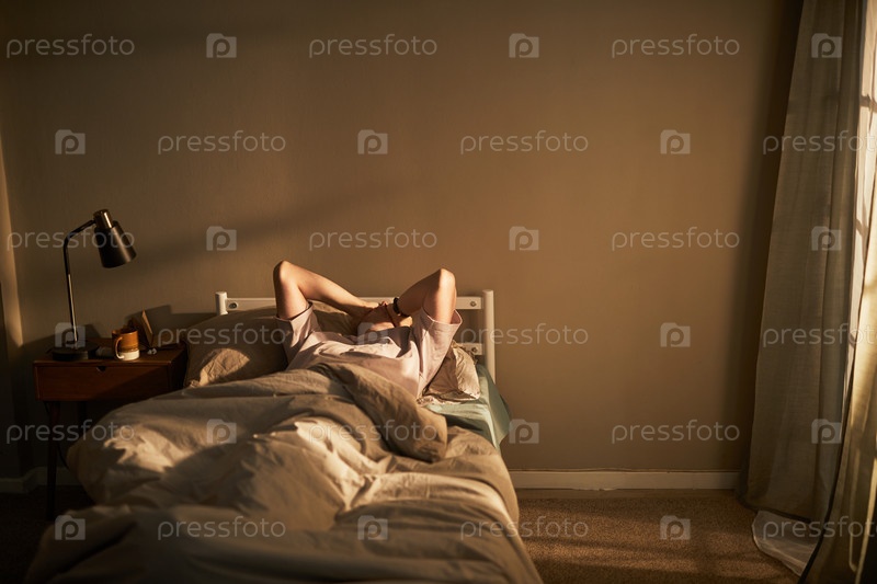 Молодой белый мужчина лежит в постели, выражая эмоциональное расстройство