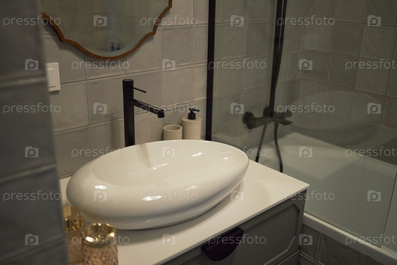 Ванная раковина с краном и мыльным распределителем в современном интерьере