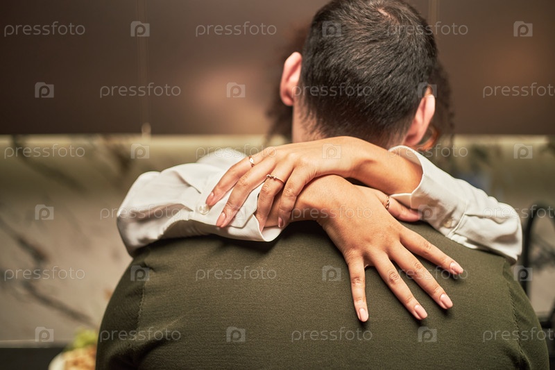 Молодая мультиэтническая пара делится интимным объятием на современной кухне