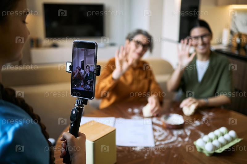 Девушка-подросток снимает в социальных сетях содержимое женской выпечки