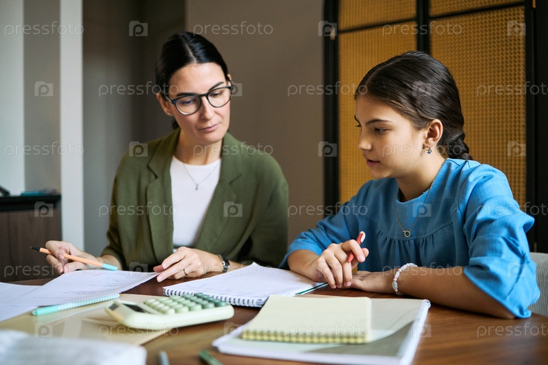 Взрослая женщина обучает девочку-подростка во время частной сессии изучения