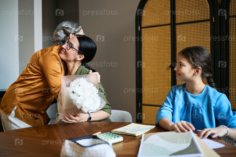 Женщина среднего возраста обнимает взрослую дочь во время семейного праздника