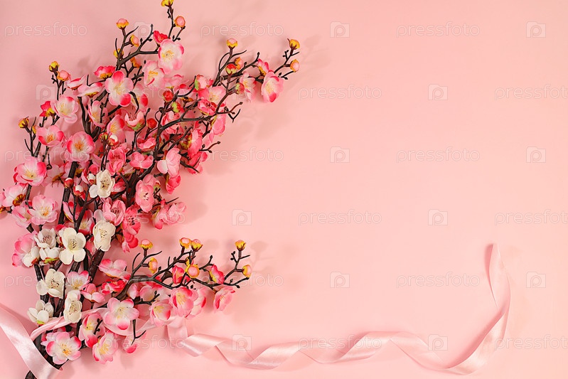 Нежные розовые ветви сакуры на солнечном фоне, элегантный красочный баннер и шаблон для вашей творческой работы, абстрактная весенняя цветовая аранжировка