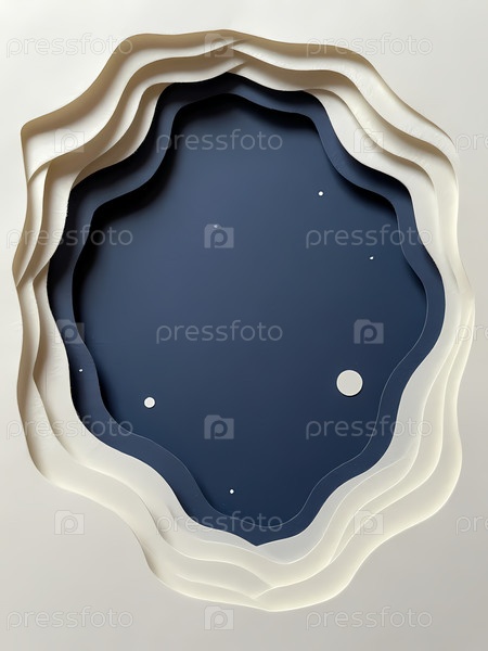 Это произведение изображает слои бумаги, сделанные в форме абстрактной космической сцены.Звезды и круги отображены в центре темно-синего цвета.Дело имеет простой дизайн Generative AI