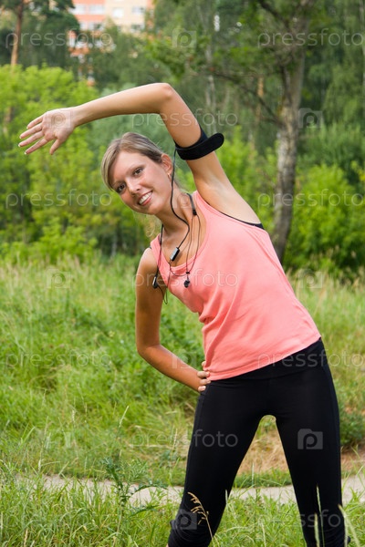Молодая девушка делает упражнения на открытом воздухе