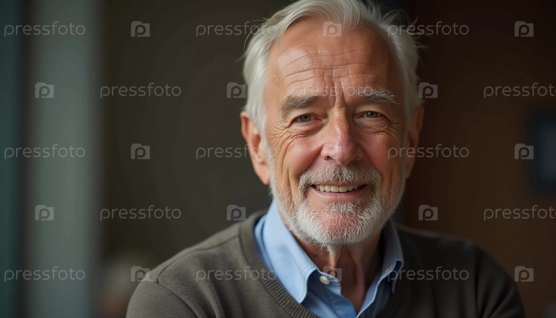 Пожилой мужчина, житель США, с белыми волосами и бородой блестит радостно, демонстрируя свое дружественное поведение в непринужденной одежде