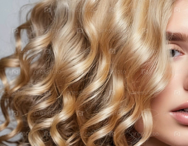 Мягкие светящиеся локоны обрамляют лицо, подчеркивая яркую и здоровую текстуру светлых волос. Близкий план прекрасно улавливает сложные детали. Косметика для ухода. Генеративный ИИ