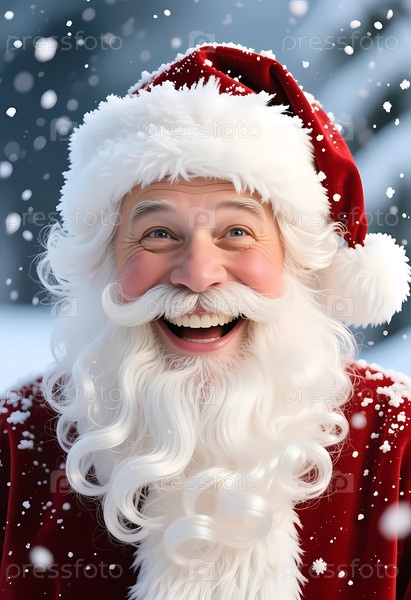 Санта Клаус счастливо улыбается в снежной обстановке. Его ярко-красная шляпа и пушистая белая борода выделяются, когда вокруг него падают снежинки. Сцена захватывает дух зимы Generative AI