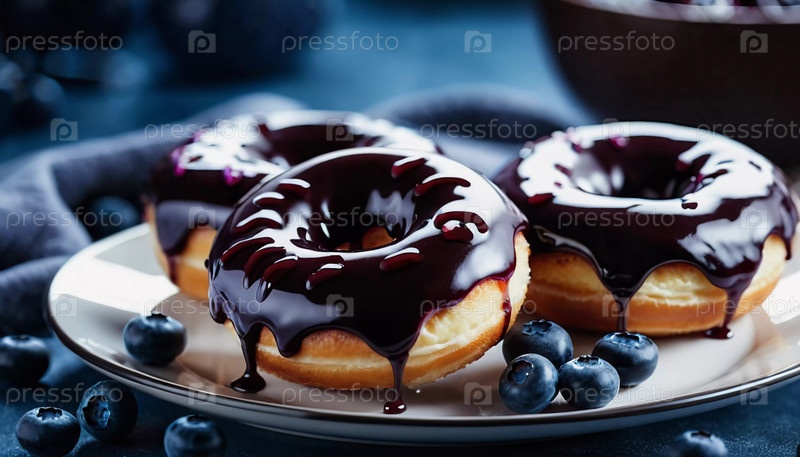 Соблазнительная куча свежеприготовленных голубиных филевых пончиков с богатой глазурью, демонстрирующих яркие ягоды сверху, идеально подходит для желания десерта в любое время суток