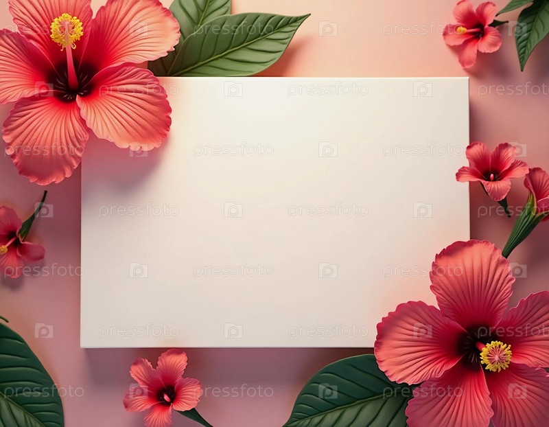 Вибрирующие цветы гибискуса расцветают и мягкий полупрозрачный фон для текста, улучшая естественную красоту. Мягкий свет добавляет спокойную атмосферу в тропическую обстановку. Фон для упаковки чая. AI