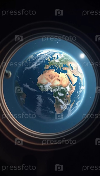 Наблюдение за планетой Земля через люк открывает захватывающий вид на покрытые снегом горы, спокойные океаны и рассеянные облака, подчеркивая красоту планеты сверху