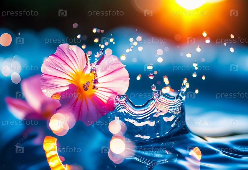Множество ярких капель вспыхивает в красочном брызге, создавая потрясающий дисплей ярких оттенков на мягко размытом фоне. Замерзающее движение. Красота природы в данный момент. ИИ