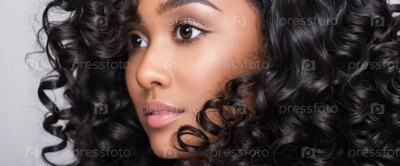 Яркие локоны обрамляют молодое лицо, демонстрируя великолепные черные блестящие волосы с четкими спиралями.Мягкий свет улучшает текстуру и глубину локонов, создавая потрясающий внешний вид.Генеративный ИИ