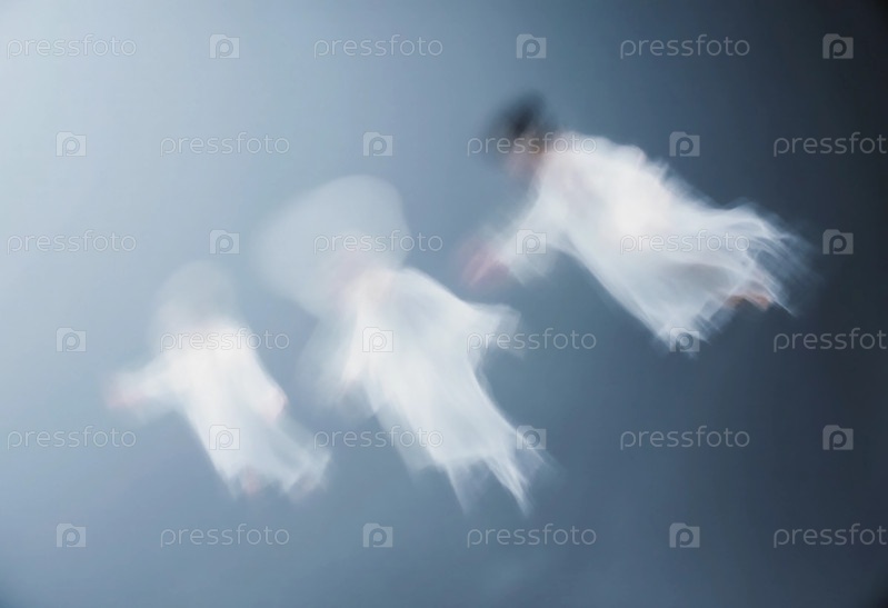 Эфирные фигуры, напоминающие призраков, плавают по туманному пространству в белых одеждах.Установка сумерек добавляет загадочный и завораживающий настрой Generative AI