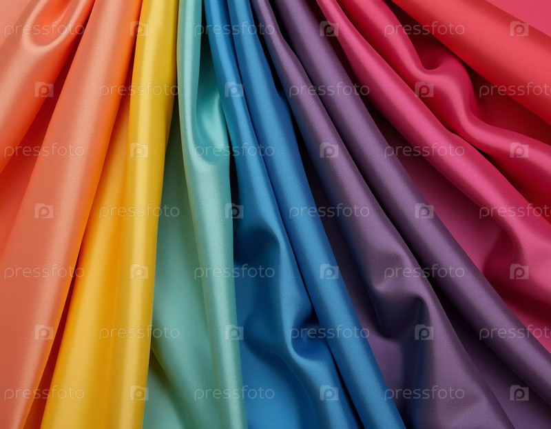 Потрясающее расположение образцов шелковой ткани раскрывает множество ярких цветов, которые плавно смешиваются от теплых оттенков до прохладных оттенков, приглашая к творческому вдохновению и исследованию