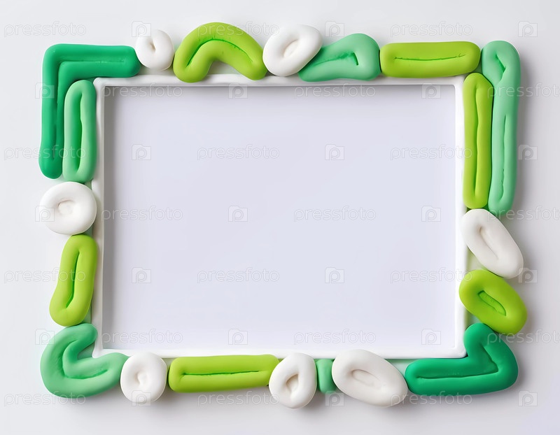 Прямоугольная рама, украшенная абстрактными белыми и зелеными формами, представлена на пустом фоне, приглашая к творчеству для различных художественных начинаний