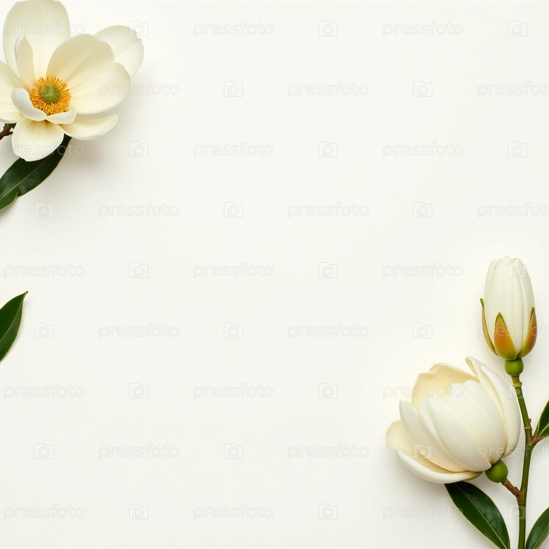 Нежные цветы магнолии мягко отдыхают в углу на нежном пастельном фоне, создавая спокойную атмосферу. Художественный проект тихое отражение. Идеальное полотно для личных прикосновений продуманные сообщения AI