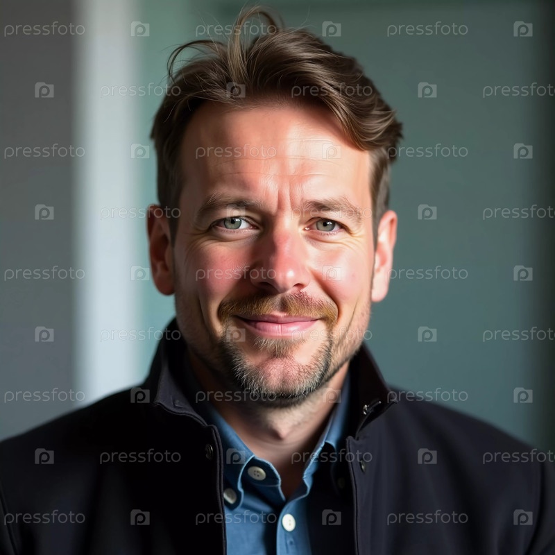Шведский мужчина стоит в современном помещении, освещенном мягким теплым светом Generative AI