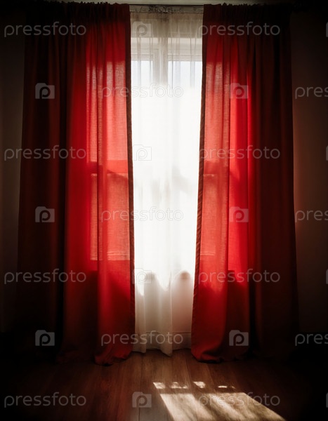 Ярко-красные шторы изящно застегиваются вокруг окна, позволяя проникать мягкому солнечному свету.Деревянный пол улучшает теплую атмосферу в уютном пространстве днем Генеративная AI