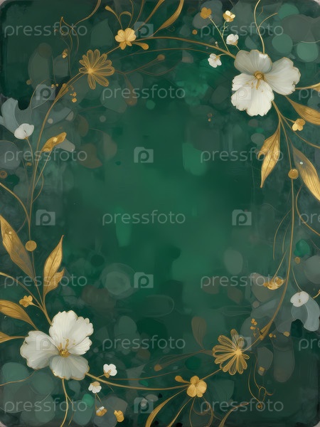 Гобелен из эфемерного желтого золота и белых цветов элегантно разворачивается на ярком зеленом фоне, захватывая момент спокойной красоты природы Generative AI