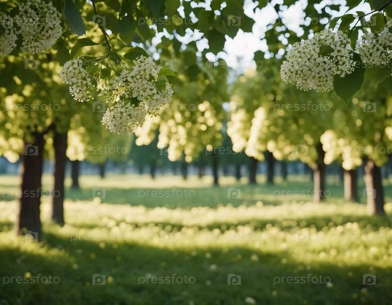 Солнечный свет фильтруется через пышные зеленые листья, создавая спокойную атмосферу в естественной обстановке.Золотой час улучшает яркие цвета сцены.Линда Тилия - род древесных растений