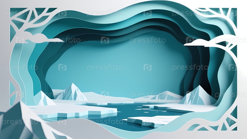 Большие пятна льда и айсберги плавают в Северном Ледовитом океане.Сцена показывает ледяной пейзаж на полюсах с небом, заполненным облаками над водой Generative AI
