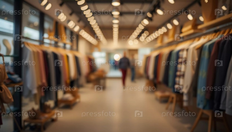 В магазине современной одежды стеллажи демонстрируют ассортимент модной одежды. яркое освещение улучшает приветливую атмосферу, что делает его идеальным для изучения покупателями. боке. генерировать ИИ