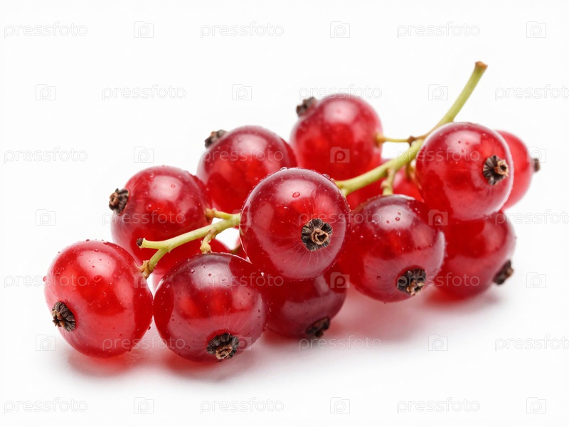 Красные смородины сидят на белом фоне. Их блестящая поверхность показывает капли воды. Эти ягоды можно использовать в рецептах или наслаждаться как закуска Generative AI
