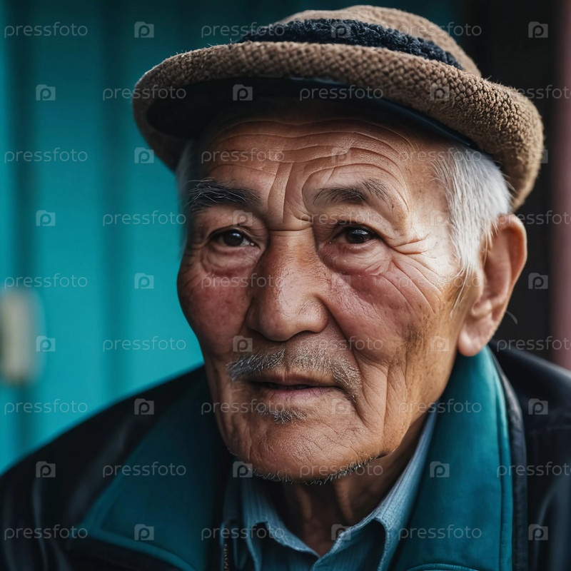 75-летний пожилой джентльмен тепло смотрит в камеру, демонстрируя линии хорошо прожитой жизни.Он одет в шляпу и пальто на размытом фоне днем.Генеративный ИИ
