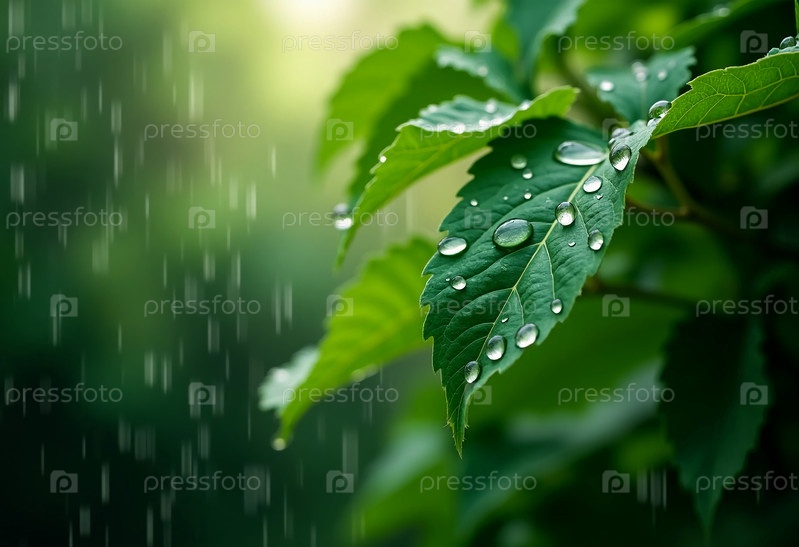 Листья кажутся свежими и живыми, когда капли дождя нежно сидят на их поверхности, создавая потрясающий дисплей красоты природы среди спокойной атмосферы сада