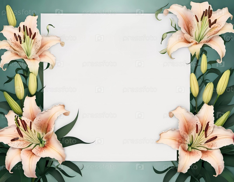 Красивое расположение розовых лилий и зеленых бутонов создает красивую цветочную границу вокруг пустого места.Этот дизайн идеально подходит для приглашений, поздравительных открыток или канцелярских принадлежностей