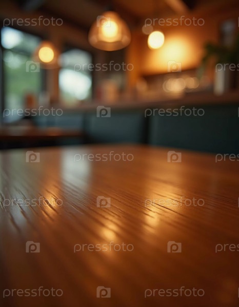 Теплый деревянный стол создает уютную атмосферу в оживленном кафе.Мягкие огни освещают фон, где посетители наслаждаются напитками и разговорами.Генеративная ИИ