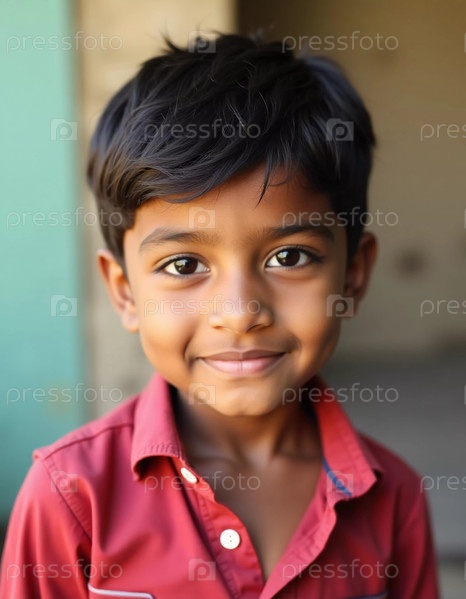 Веселый мальчик с яркой улыбкой демонстрирует радость детства в Индии. его игривый дух сияет, когда он уверенно стоит, захватывая суть молодости и невинности