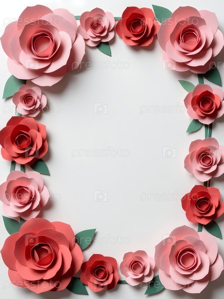 Розы в красных и розовых оттенках образуют декоративную раму с зелеными листьями на простом розовом фоне.Этот дизайн идеально подходит для отправки теплых сообщений на открытки Generative AI