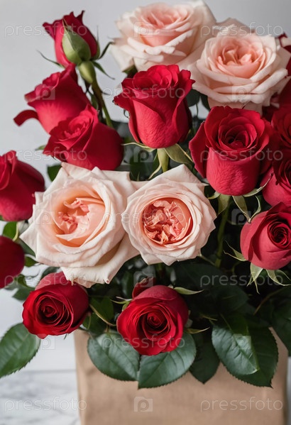 Вибрирующие красные розы смешиваются с нежными белыми, создавая потрясающий букет, который освещает любое пространство.Идеально подходит для празднований, подарков или романтических жестов Generative AI